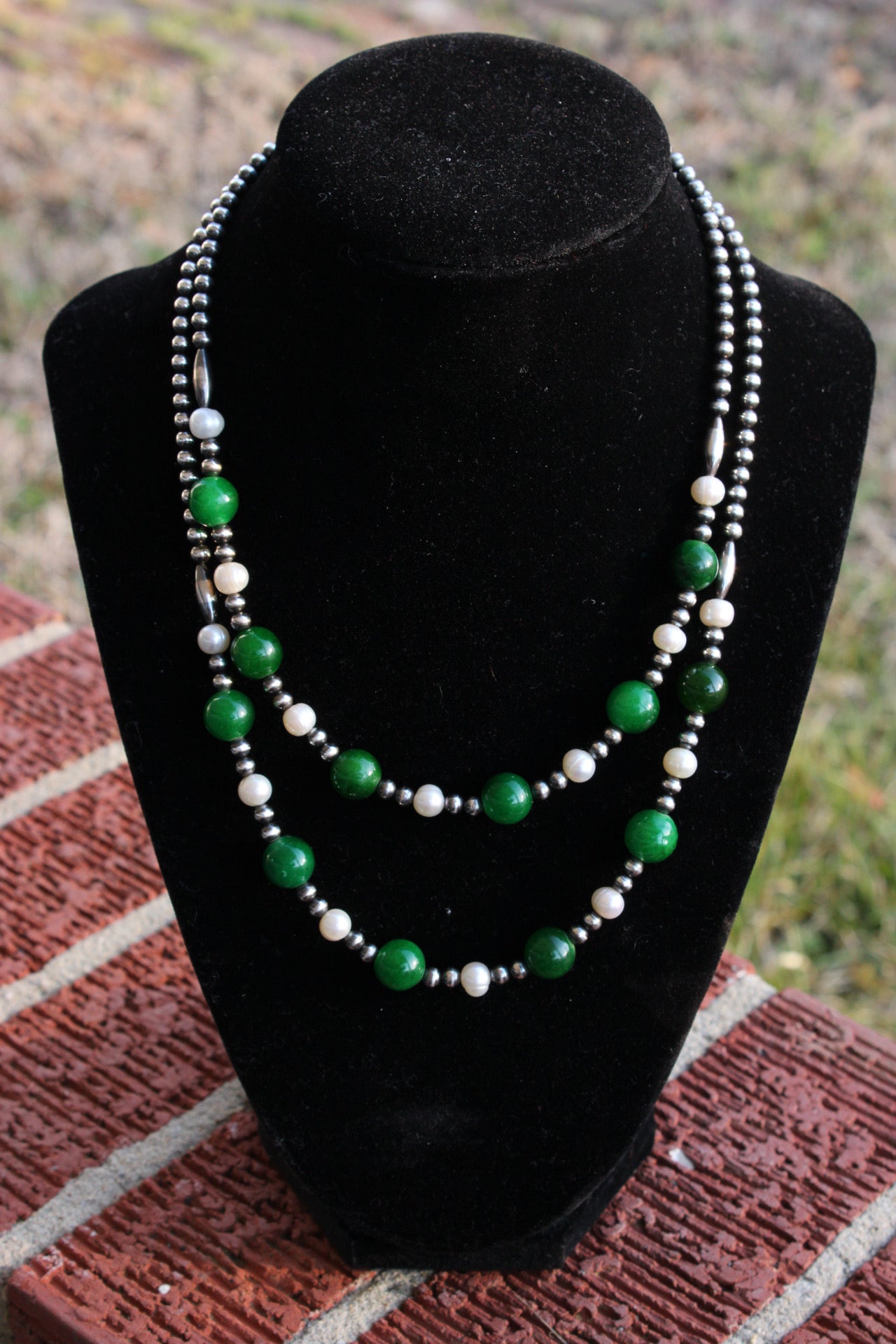 -Features Dark Green Glass Beads & Freshwater Pearls